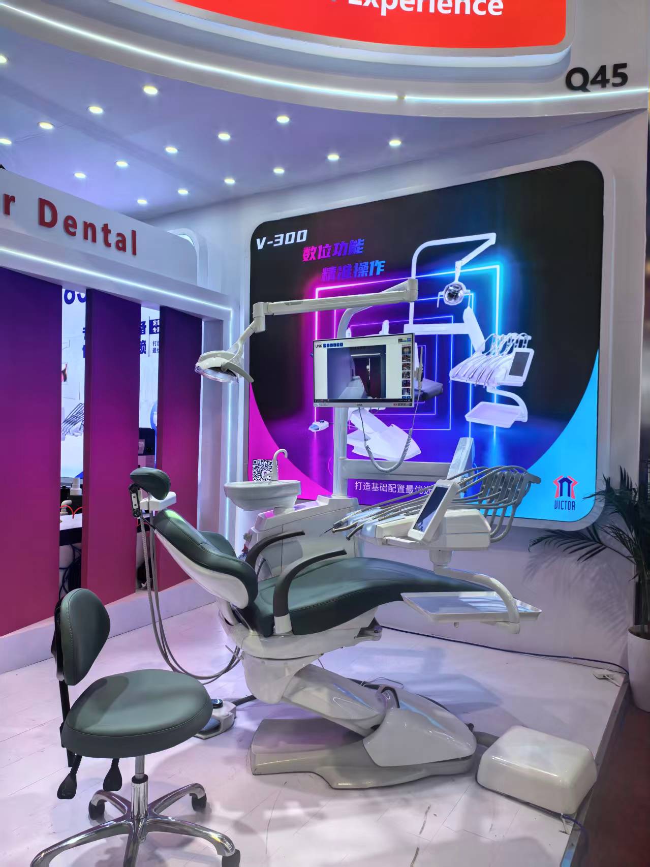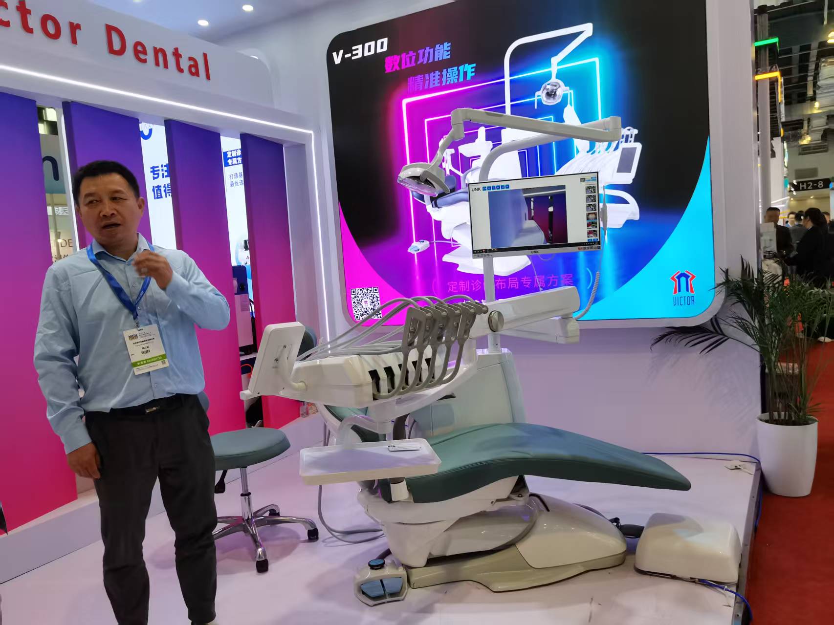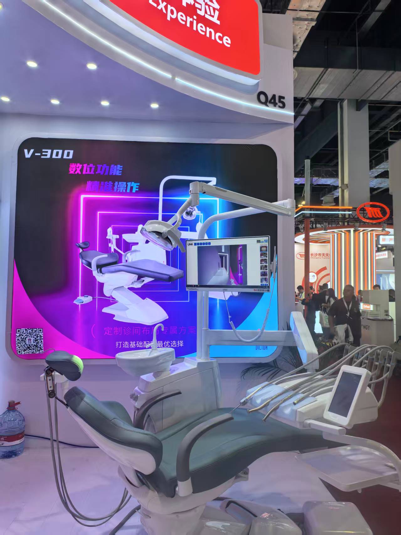 展会中展出的V-300(液压款)具有天然的缓冲和减震特性,使得牙椅的升降启动和停止都非常柔顺,无冲击感,这能为患者,尤其是紧张的患者,提供更安宁、舒适的诊疗体验。